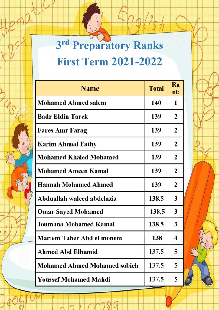 3rd Preparatory Ranks First Term 2021-2022