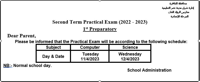 Second Term Practical Exam (2022 – 2023)1st Preparatory